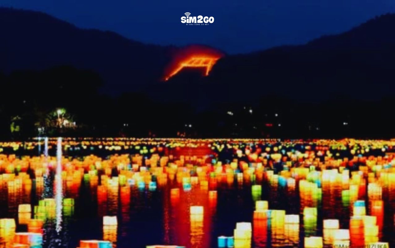 Các ngọn lửa lớn được thắp sáng trên năm ngọn núi quanh Kyoto, tạo thành các ký tự và hình dạng khổng lồ, rất ấn tượng.