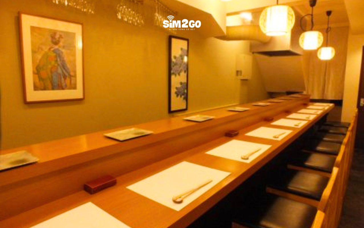 ữa ăn bắt đầu với rau củ bào nhuyễn và các món khai vị. Nigiri ở đây chú trọng vào phần nguyên liệu bên trên, với miếng cá được cắt dày, còn lượng cơm sushi thì vừa phải. Những miếng sushi nhỏ giúp thực khách có thể thưởng thức nhiều loại cá khác nhau một cách trọn vẹn.