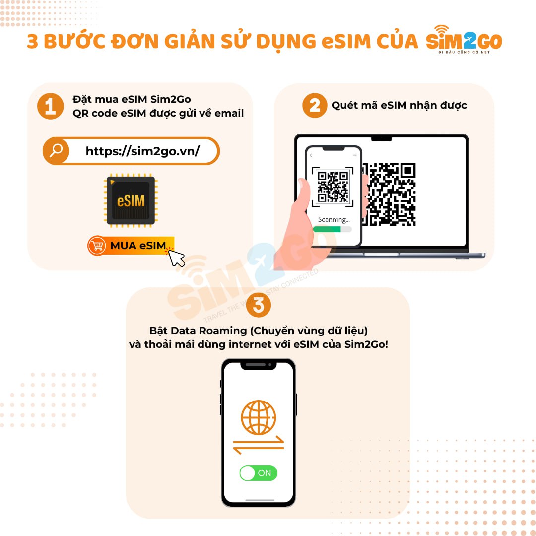 - Hỗ trợ khách hàng tận tình. SIM2GO hướng dẫn cài đặt eSIM thành công và hỗ trợ bạn trong suốt quá trình sử dụng eSIM tại Úc (Australia)