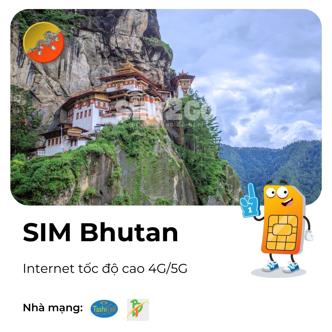 - Mua SIM tại SIM2GO rẻ hơn mua loại tương tự ở sân bay Bhutan hoặc các cửa hàng Nhà mạng nội địa