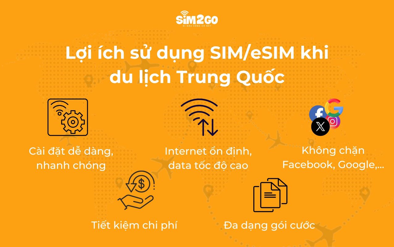 Giải pháp đơn giản và đáng tin cậy nhất là đặt mua SIM/eSIM Trung Quốc trước tại Việt Nam. Một trong những nhà cung cấp SIM du lịch Trung Quốc và eSIM du lịch Trung Quốc uy tín tại Việt Nam là SIM2GO, với nhiều sản phẩm SIM/eSIM du lịch đa dạng sử dụng cho hơn 200 quốc gia. Tiện lợi, dễ dàng nhận SIM với dịch vụ giao hàng toàn quốc và nhận eSIM qua mail chỉ trong 5 phút, có SIM/eSIM dùng ngay khi vừa xuống sân bay.