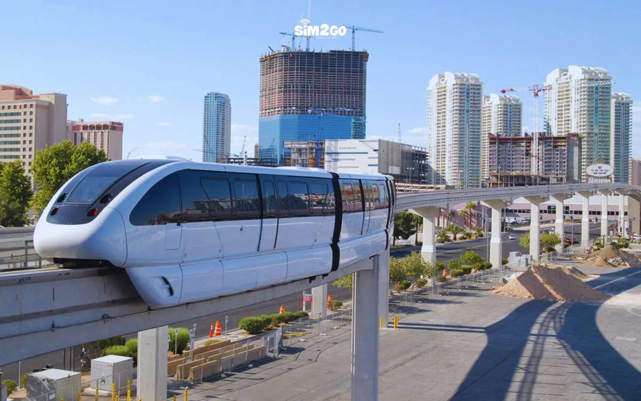 Monorail Las Vegas là hệ thống tàu điện một ray hiện đại, phục vụ nhu cầu di chuyển nhanh chóng và tiện lợi dọc theo Las Vegas Strip. Đây là phương tiện tuyệt vời để tránh tình trạng kẹt xe, giúp du khách dễ dàng di chuyển giữa các khách sạn, casino, và điểm tham quan lớn trên Strip.