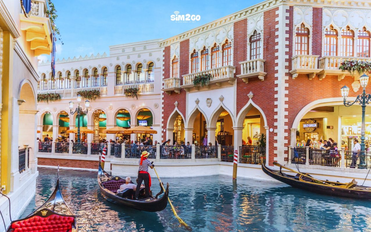 Nếu bạn muốn có một chuyến phiêu lưu lãng mạn phong cách Ý ngay tại Las Vegas, hãy thử đi thuyền gondola trên làn nước xanh ngọc của Khu nghỉ dưỡng Venetian. Người chèo thuyền sẽ hát khi đưa bạn qua kênh đào mô phỏng Grand Canal với những điểm nổi bật như cầu Rialto và Cung điện Doge.