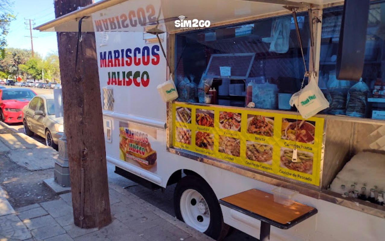 Mariscos Jalisco là những xe bán đồ ăn chuyên phục vụ các món hải sản kiểu Jalisco cổ điển của Mexico và nổi tiếng với món taco cá được xem là một trong những món kinh điển nhất trong thành phố. Ngoài taco, xe còn phục vụ các món ceviche, hàu tươi, và tostada. Tuy nhiên, món ăn đặc trưng ở đây là tacos dorado de camarón, gồm bánh tortilla chiên giòn với tôm, phủ bơ và salsa roja.