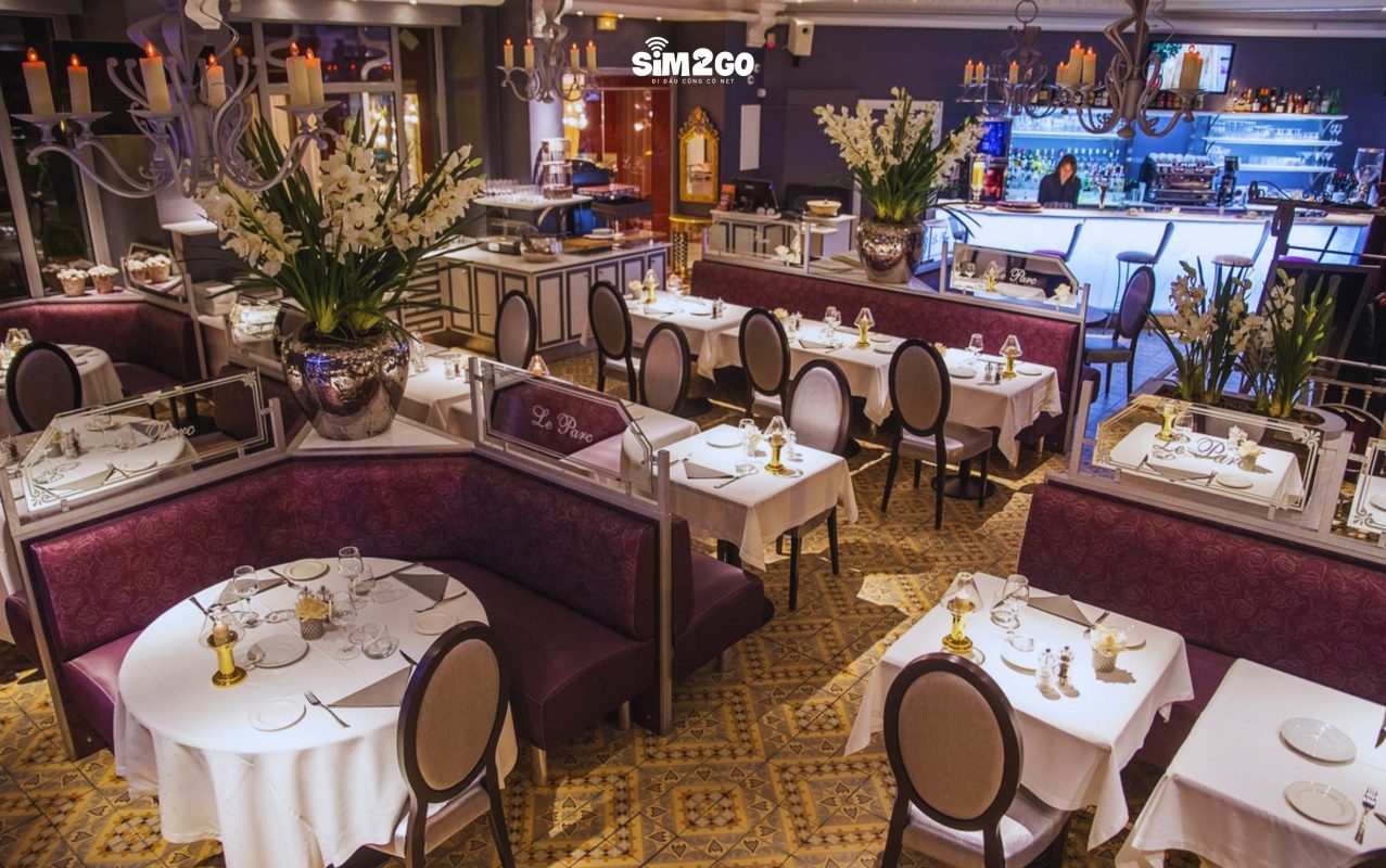 Nhà hàng phục vụ các món ăn truyền thống Pháp, với thực đơn đa dạng bao gồm các món từ thịt, cá, và các món ăn chay. Sử dụng nguyên liệu tươi ngon và địa phương để đảm bảo chất lượng món ăn. Le Parc có không gian rộng rãi và thoáng đãng, thường có khu vực ngoài trời lý tưởng để thưởng thức bữa ăn trong không khí dễ chịu. Nếu bạn chọn lưu trú tại đây, Le Parc cung cấp các phòng nghỉ thoải mái và tiện nghi, phù hợp cho cả du khách cá nhân và gia đình.